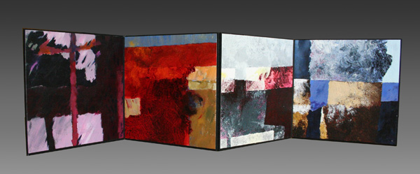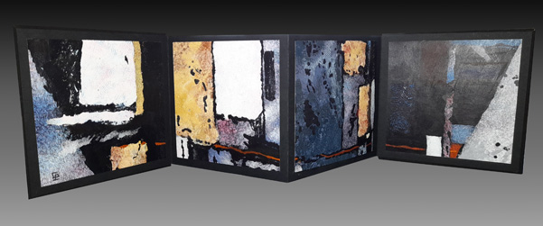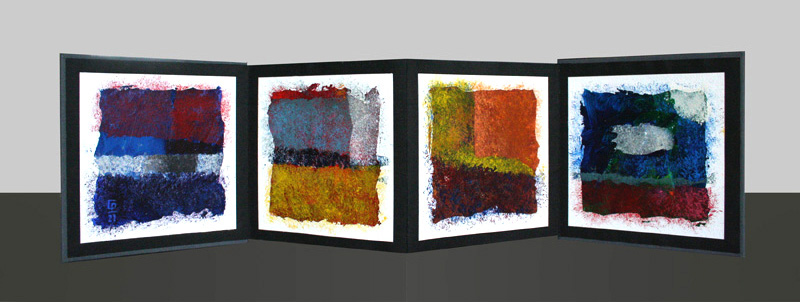 Book size closed: 20.5 x 20.5 cm; Book size open: 81.6 x 20.5 cm; Paintings: 4 no., each 20.3 x 20.3 cm